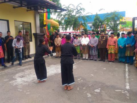Memasuki gedung DPRD Bengkalis rombongan disambut sepasang pesilat menunjukkan kebolehannya dihadapan rombongan Bupati dan para Forkopimda.