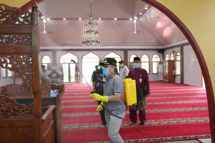Cegah Covid-19, Walikota Dumai Ikut Goro Penyemprotan Disifektan di Masjid