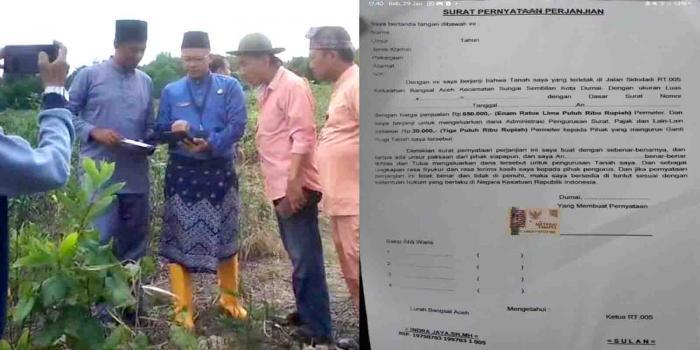 5 bulan laluDUMAI, POROSRIAU.COM - Surat pernyataan pemotongan ganti rugi lahan masyarakat di Jalan Sidodadi kelurahan Bangsal Aceh sebesar Rp30 ribu ternyata diketahui lurah Bangsal Aceh dan Ketua RT 005.