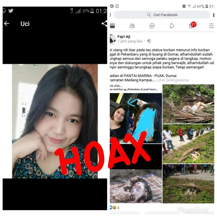 Dalam postingan tersebut menyebutkan bahwa telah ditemukan salah satu potongan tubuh mayat perempuan tanpa kepala yang ditemukan di Jalan Mattaim RT 04 Kelurahan Teluk Makmur, Kecamatan Medang Kampai, pada Kamis (02/05) lalu.