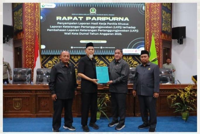 Pernyataan tersebut disampaikan oleh Wali Kota Dumai, H Paisal saat menghadiri Rapat Paripurna dalam rangka Penyampaian Hasil Kerja Panitia Khusus (Pansus) terhadap Laporan Keterangan Pertanggungjawaban (LKPj) Wali Kota Dumai Akhir Tahun Anggaran 2025 di Ruang Rapat Paripurna Lantai II, Sekretariat DPRD Kota Dumai, Bagan Besar, Selasa (07/04/26).