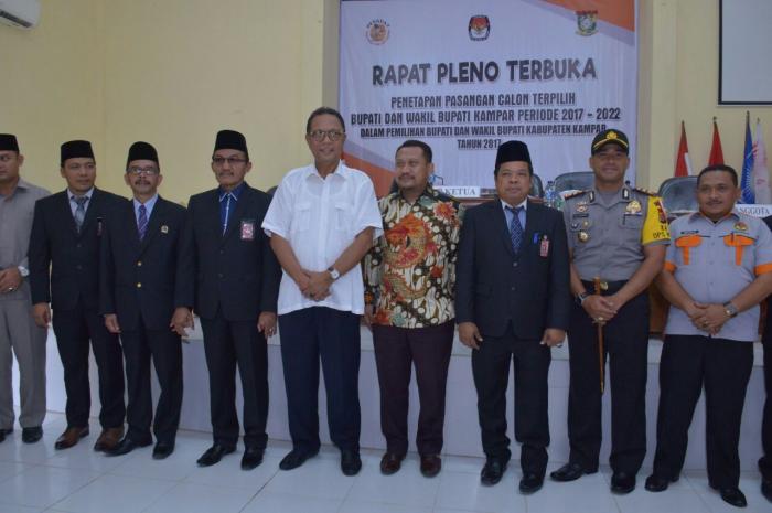 Penetapan tersebut berdasarkan hasil Rapat Pleno Terbuka Pasangan Calon Terpilih Bupati dan Wakil Bupati Kampar periode 2017 - 2022 dalam Pilkada Kab. Kampar tahun 2017.