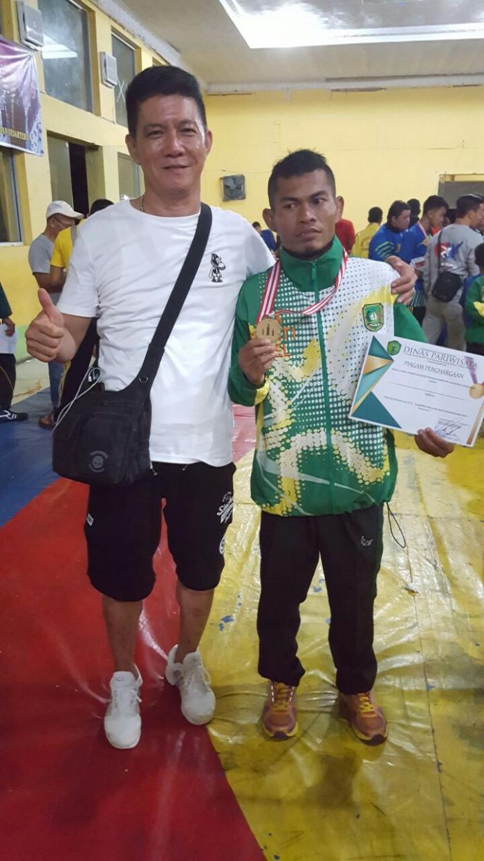 Impian Hermanto terwujud, hari pertama, Sabtu (16/12/2017), tim gulat Kota Sagu yang dipimpinnya berhasil sikat 5 medali dengan satu medali Emas tiga medali perunggu dan satu medali Perak.