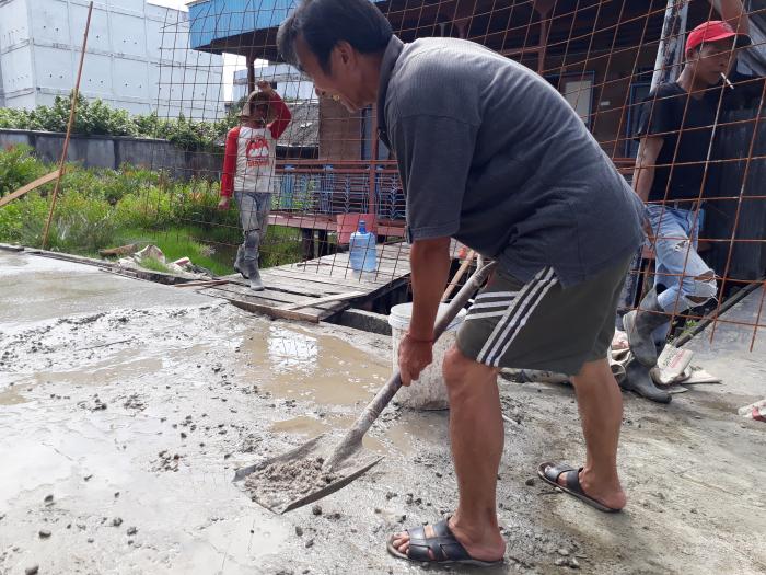 Hingga saat ini, pengerjaannya sudah mencapai 50 % dan kalau cuaca mendukung, dalam beberapa hari lagi akan selesai, ucap Ketua RT itu.