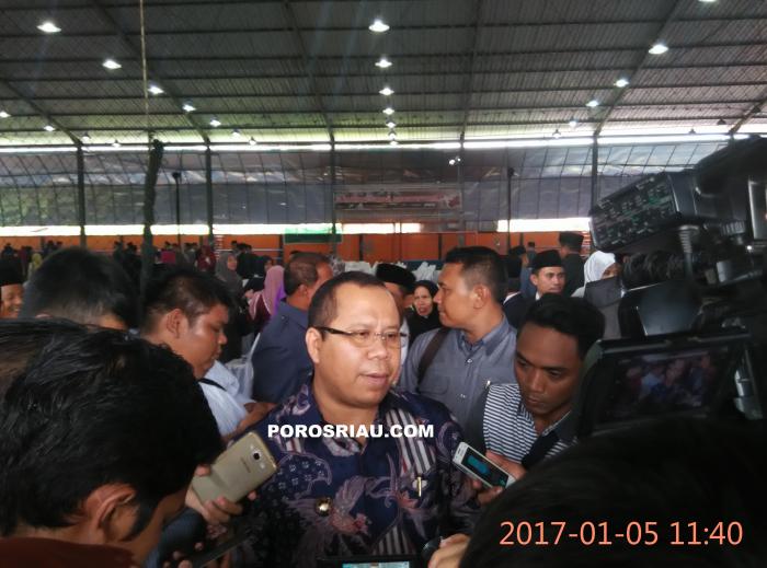 SELATPANJANG(POROSRIAU.COM) - Sebanyak 441 pejabat eselon III dan IV dilingkungan Pemerintah Kabupaten Kepulauan Meranti, resmi dilantik. Pelantikan dalam rangka mengisi Organisasi Perangkat Daerah (OPD) baru sebagaimana dikeluarkan Undang Undang baru tentang Organisasi Perangkat Daerah No 23 Tahun 2014 dan PP 18 tahun 2016 ini, dilakukan langsung oleh Bupati Kepulauan Meranti, Drs H Irwan MSi, di lapangan Afifa Jalan Banglas Selatpanjang. Kamis (5/1/2017) pagi.