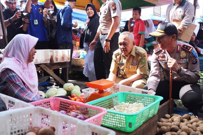 Kunjungi Pasar Cik Puan Bersama Gubri, Kapolda: Harga Bahan Pokok Saat Ini Relatif Stabil