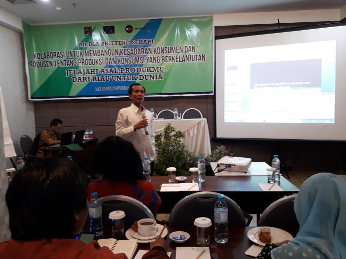 Kegiatan yang berlangsung di Evo Hotel Jalan Jenderal Sudirman ini mengangkat tema 'Kolaborasi untuk Membangun Kesadaran Konsumen dan Produsen tentang Produksi dan Konsumsi yang Berkelanjutan. Jelajahi Asal Produkmu: Dari Riau untuk Dunia'.