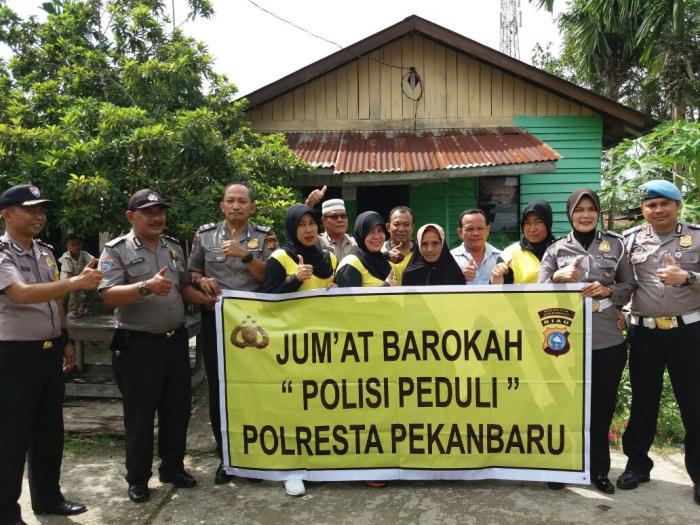 Melalui laporan dari Bhabinkamtibmas Rumbai Pesisir bahwasanya diwilayah beliau bertugas ada warga yang benar-benar kurang mampu,Tim jum'at barokah mewakili Kapolresta Pekanbaru kali ini dipimpin oleh Kasubag Humas Polresta Pekanbaru Iptu.Polius yang didampingi Kasat Binmas Iptu.Yahaludin,Aipda.Mahmudi,serta Ipda.Ratna bersama rombongan Polwan dari Polresta Pekanbaru.