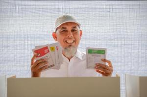 H. Paisal dan istri Hj Leni Ramaini Nycoblos di TPS 30 di Jalan Paus, Kel Pangkalan Sesai, Kec Dumai Barat