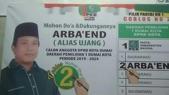 DUMAI (POROSRIAU.COM) – Arba’end adalah Calon Anggota Legislatif (Caleg) 2019 Kota Dumai dari Partai Kebangkitan Bangsa (PKB), mewakili Daerah Pemilihan (Dapil) 1 yakni Kecamatan Dumai Kota dengan nomor urut dua (2).