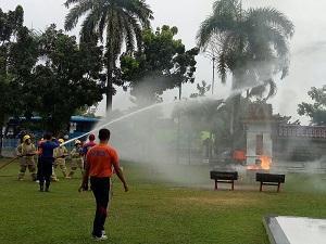 9 tahun laluPEKANBARU (POROSRIAU.COM) - Lima orang wanita yang merupakan petugas Badan Penanggulangan Bencana Daerah dan Pemadam Kebakaran (BPBD Damkar) Kota Pekanbaru, Kamis (16/3/2017), berjibaku memadamkan api yang membara di Kantor Walikota Pekanbaru.