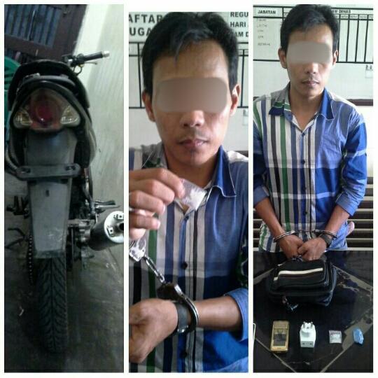 Selanjutnya setelah dilakukan penggeledahan dari tersangka ditemukan 1 buah tas warna hitam yang berisikan cok cabang listrik/ saklar warna putih, yang di dalamnya terdapat 1 buah kantong plastik bening yang berisi diduga narkotika jenis sabu ( seberat kurang lebih 1 gram), 1 unit hp merk oppo warna putih, 1 unit hp nokia tipe 6300, 1 unit Sepeda Motor jenis satria fu tanpa no plat.