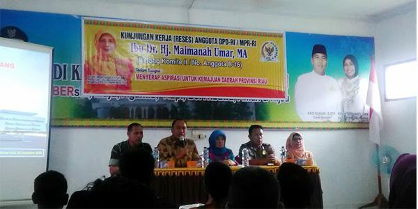 ROHUL (POROSRIAU.COM)-- Anggota DPD RI DR. Hj Maimanah Umar MA,melakukan Reses di Kecamatan Rambah Kabupaten Rokan Hulu (Rohul), untuk menyerap Aspirasi Masyarakat. Hal ini terlihat pada Pertemuan yang di gelar Senin(26/12/2016)di Aula Kantor Camat Rambah.