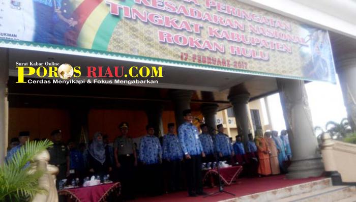ROHUL(POROSRIAU.COM)- Pemerintah Kabupaten Rokan Hulu (Pemkab Rohul) Jumat, (17/2/2017) pagi laksanakan Upacara Hari Kesadaran Nasional Tingkat Kabupaten. Sekdakab tekankan kepada pegawai Pemkab Rohul untuk memaknai perjuangan para Pahlawan terdahulu.