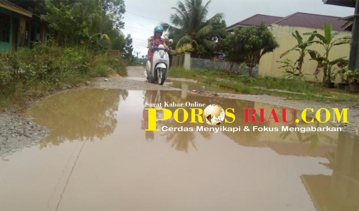 Jalan umum di samping TK Pembina, yang tembus ke arah Masjid Ar Rahman, Desa Rambah Tengah Utara , Kecamatan Rambah, kini bagaikan “kubangan kerbau” sehingga sulit dilalui masyarakat.