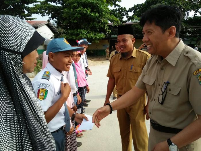 SIAK (POROSRIAU.com) - Sebanyak 34 siswa Sekolah Menengah Kejuruan Negeri (SMKN) 1 Mempura menerima bantuan Program Indonesia Pintar (PIP) dari Dinas Pendidikan dan Kebudayaan (Disdikbud) Siak, penyerahan PIP tersebut diserahkan langsung oleh Sekretaris Disdikbud Siak Suprapto dengan didampingi Kepala SMKN 1 Mempura Sudarwanto, Senin (29/8/2016) pagi, di halaman sekolah.