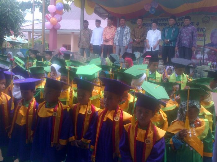 SIAK (POROSRIAU.COM) - Wisuda Akbar Raudhatul Athfal (RA), Taman Pendidikan Quran (TPQ), Madrasah Diniyah Ta'miliyah Awwaliyah (MDTA) Yayasan Al Kautsar Kampung Sialang Sakti Kecamatan Dayun Kabupaten Siak berjalan cukup khidmat dan meriah, meskipun cuaca begitu terik dan menyengat. Wisuda Akbar yang dihadiri puluhan santriwan/santriwati tersebut digelar, Kamis (11/5/2017) pagi, di halaman TPQ Al Kautsar Dayun.